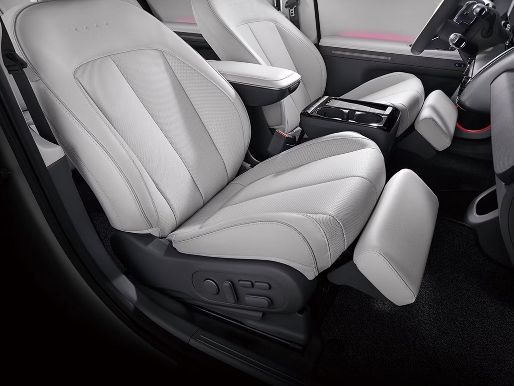 Внутри IONIQ 5 границы между жилым пространством и пространством для передвижения стираются. Большой ровный пол, полностью откидывающиеся передние сиденья с высокой степенью регулировки и гибкая центральная консоль, которую можно перемещать по всему салону. Благодаря 3-метровой колесной базе пассажиры задних сидений имеют много места. Удобство использования IONIQ 5 также было улучшено за счет большего количества физических кнопок в салоне.