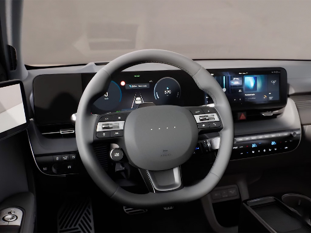 В кокпите IONIQ 5 доминирует стильная и простая в использовании панель дисплея, состоящая из цифровой приборной панели и информационно-развлекательной системы.
